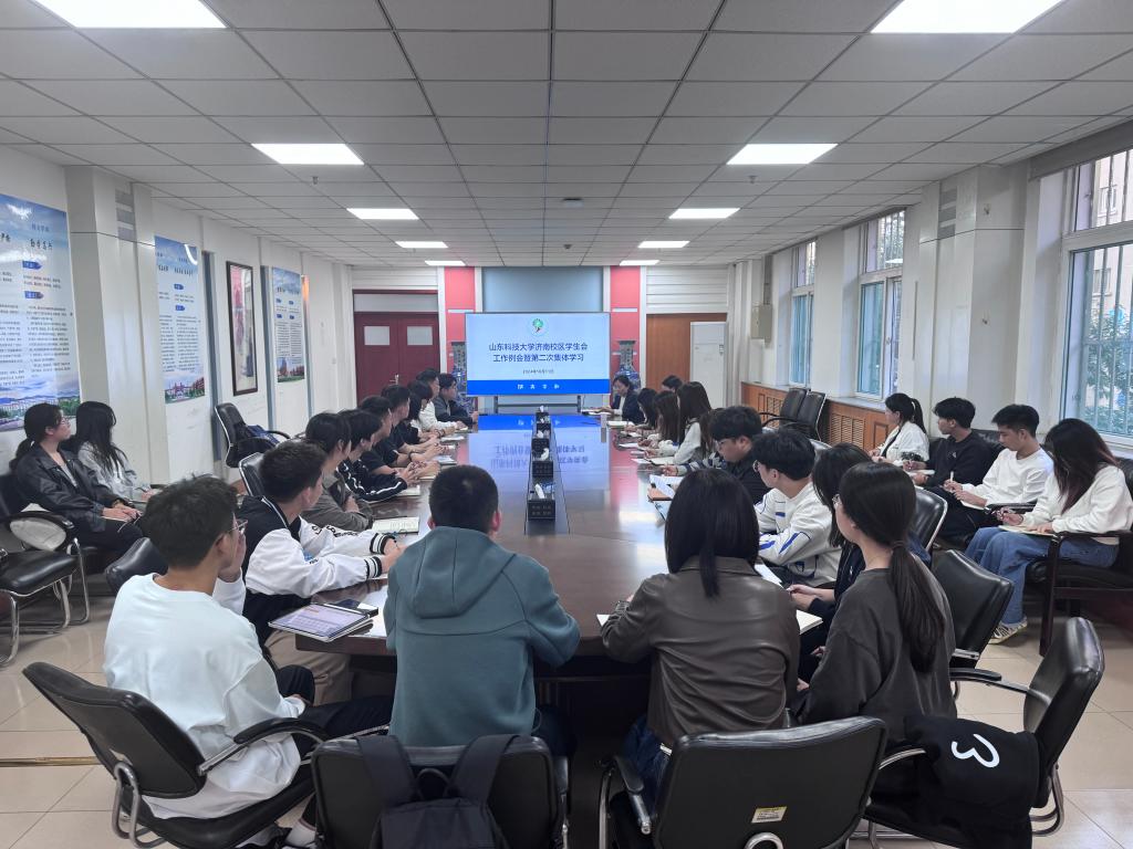 韩冰还带领大家深入学习了省学联第十三次代表大会会议精神。会议强调,山东省青年联合会第十四届委员会全体会议和山东省学生联合会第十三次代表大会审议通过的《青春正当“燃” 建功新时代》工作报告,为全省学联学生会未来五年的工作指明了方向,同时体现了党对青年学生的期望和要求。希望校区学生会牢记党对学联学生会的政治定位,以信念坚定、胸怀家国、服务同学、清新阳光的学联学生会形象,团结带领广大学生坚定不移听党话、跟党走,争做科技报国的追梦人、核心技术的突破者、创新发展的推动者、优良学风的践行者。