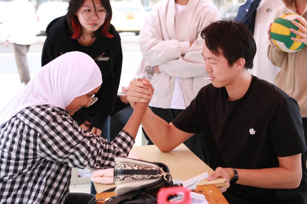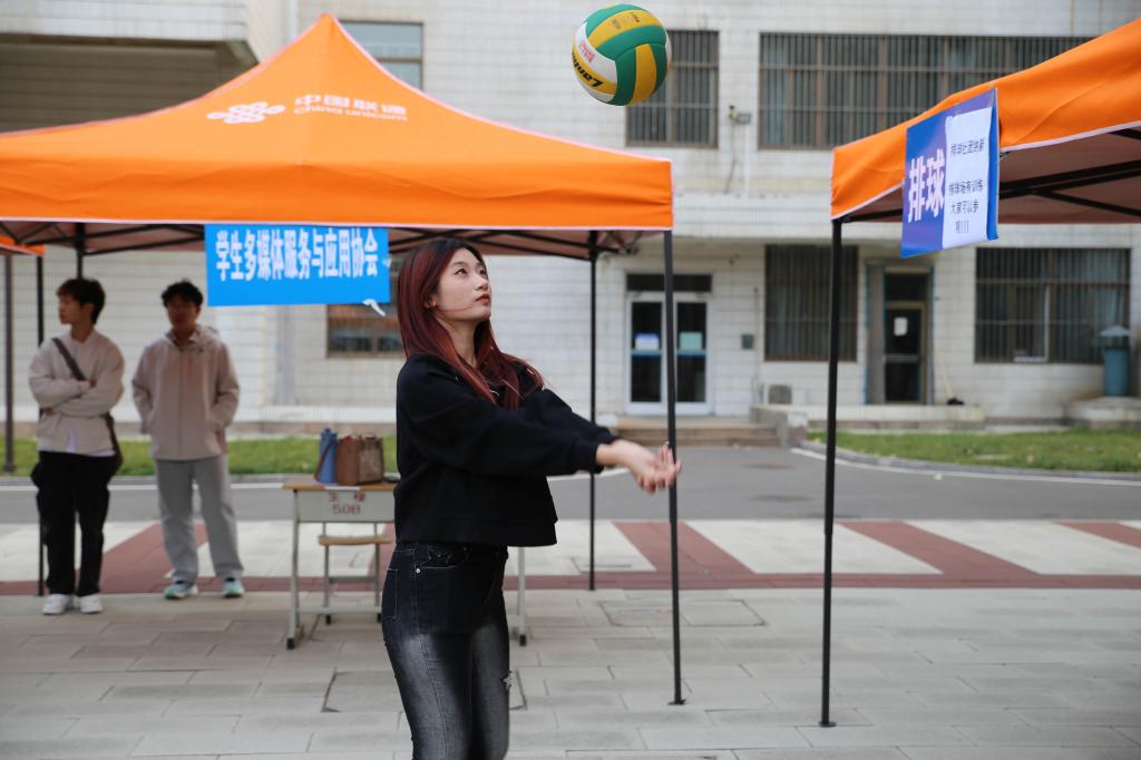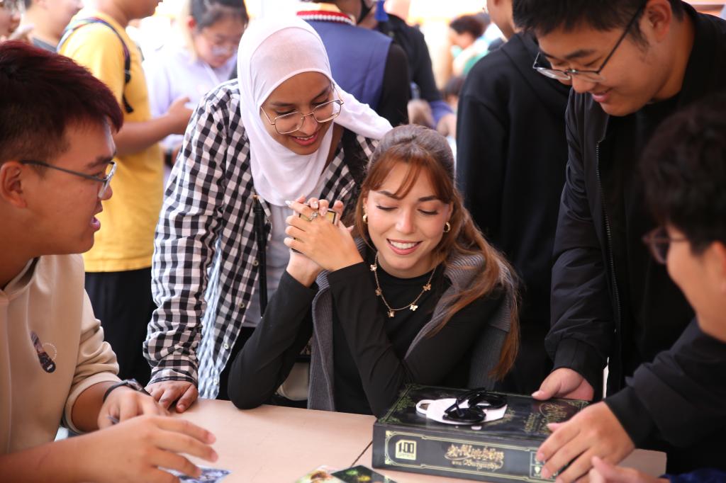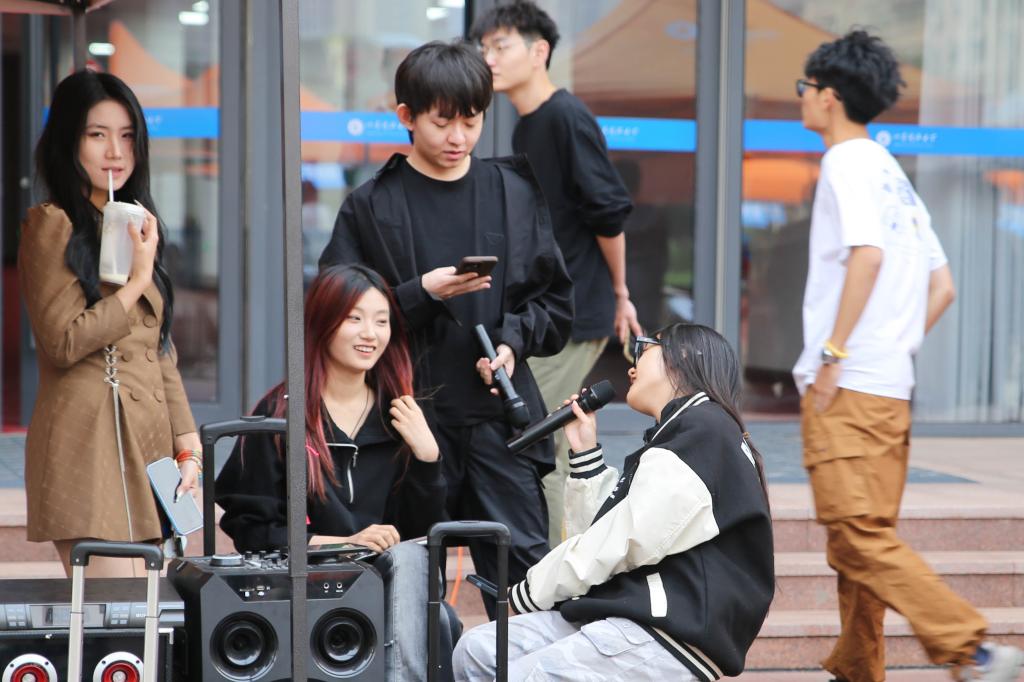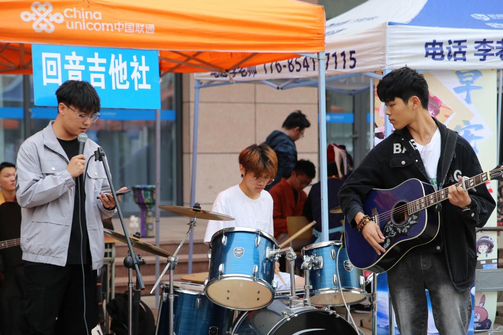 现场16个学生社团通过海报展示、路演和互动体验等多样化形式,展示了各自的特色与魅力。现场气氛热烈,人潮涌动,各个社团的报名点前排起了长队。国旗护卫队成员步伐整齐、铿锵有力,英姿勃发的身影透露出坚定与庄严;寻漫社成员化身热门动漫角色,与同学们亲密互动,现场笑声不断;回音吉他社以动人的旋律和悠扬的歌声引人驻足聆听;英语社成员邀请留学生共同参与社团展示和体验活动,分享彼此的故事和文化。内容丰富、形式多样的社团活动令人应接不暇,艺体楼广场被欢快的气氛、昂扬向上的青春热情装点得分外美丽。