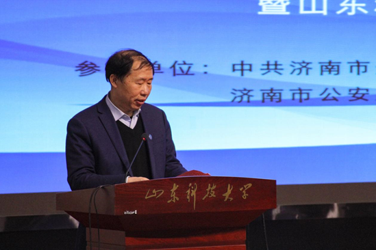为进一步加强学校交通安全管理,切实提升广大师生的交通安全意识和自我防护能力,3月6日,山东科技大学携手济南市天桥区委宣传部、济南市公安局交警支队天桥区大队,共同举办了“天桥区文明交通共建活动暨山东科技大学文明交通大讲堂”揭牌仪式。天桥区委宣传部副部长张龙海,天桥区堤口路街道党工委副书记、办事处主任席凌,济南市公安局交警支队天桥区大队政委宋广进、副大队长曹兴国、济泺路中队中队长赵洋等出席活动,校区师生代表200余人参加。仪式由学团工作部副主任鲍万杰主持。