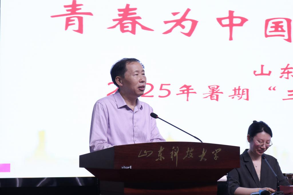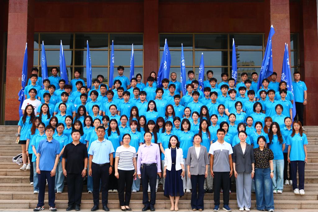 校团委副书记韩冰宣读了2025年大学生暑期“三下乡”社会实践校级重点团队名单。暑期社会实践团队指导老师刘梦昕、学生代表徐乐分别发言。陈亚楠向微光志愿者团队授旗。