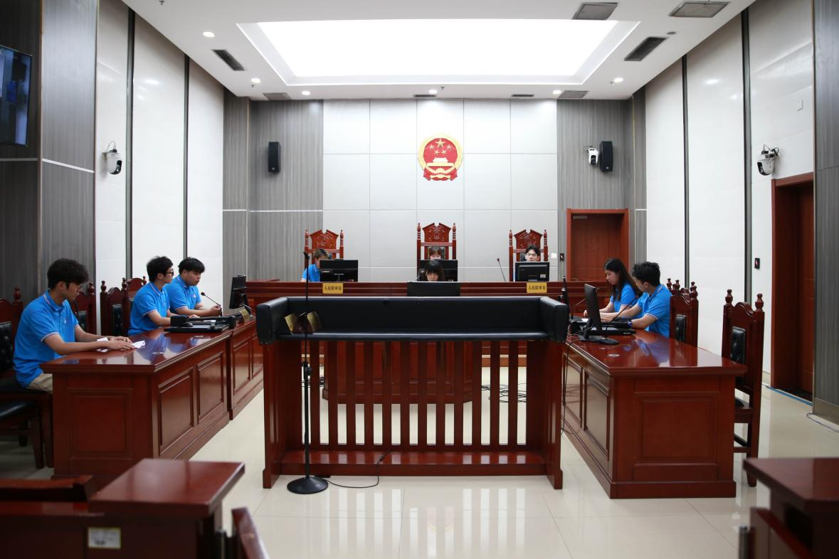 图为团队成员在宁津法院开展模拟法庭活动