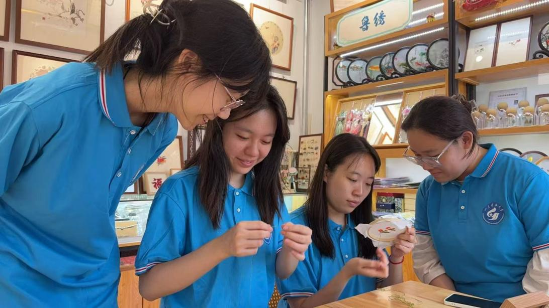 “锦线传韵”实践队走进山东省博物馆,溯源鲁绣文化根脉。队员们在古朴纹样间探寻其与齐鲁、黄河、泰山、运河文化的交融印记。他们细心梳理纹样承载的集体记忆,解码背后美学意蕴与精神内涵,让千年鲁绣的文化基因跃然眼前,深刻体会到唯有深植文化土壤,方能实现非遗的守正创新。