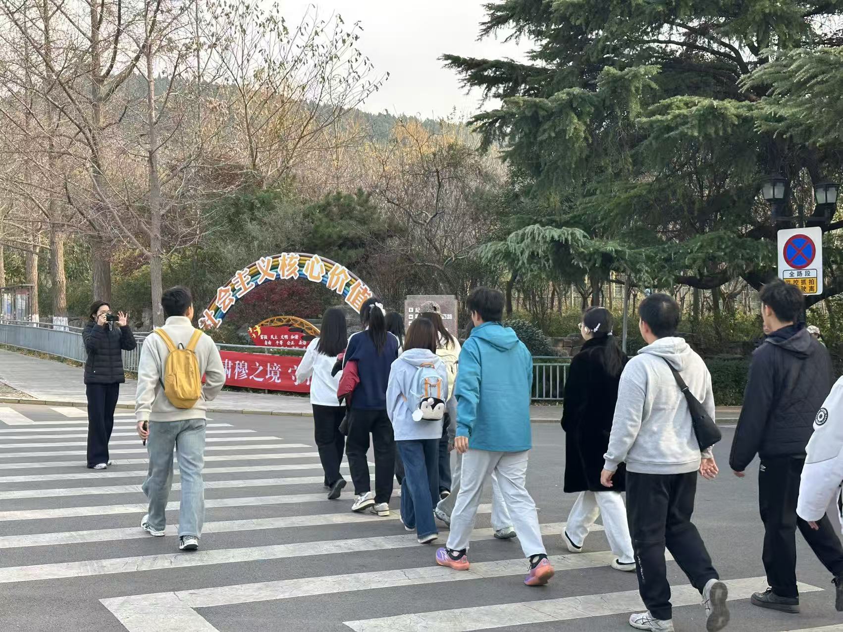 队员们从校区主楼门前精神抖擞地集结出发,全程6公里,用时1小时20分钟,顺利抵达英雄山济南革命烈士陵园。虽汗水浸透衣衫,但无人掉队,圆满完成徒步目标。