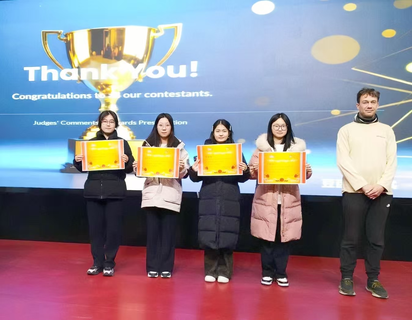 2024级英语配音比赛,以小组合作配音的形式进行。从小组选取电影片段的组织性、英语口语的表达和表演的创意性等方面进行综合评定。 最终,来自金融学24-1班的刘晓、赵雅萱、杨千叶、刘子瑜、陈娇岳获得一等奖,金融学24-1班张欢、戚姮、张雯迪、王敬蕾获得二等奖,金融学24-4班张芮尔、杨项茹、林柔铮、王潇晗获得三等奖。