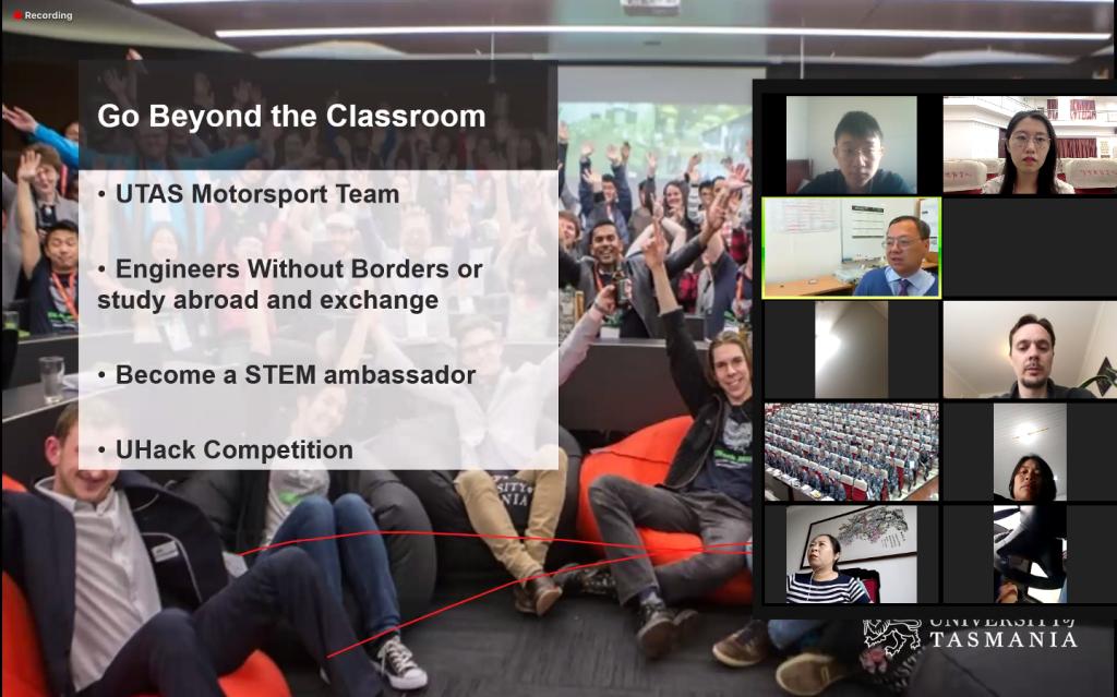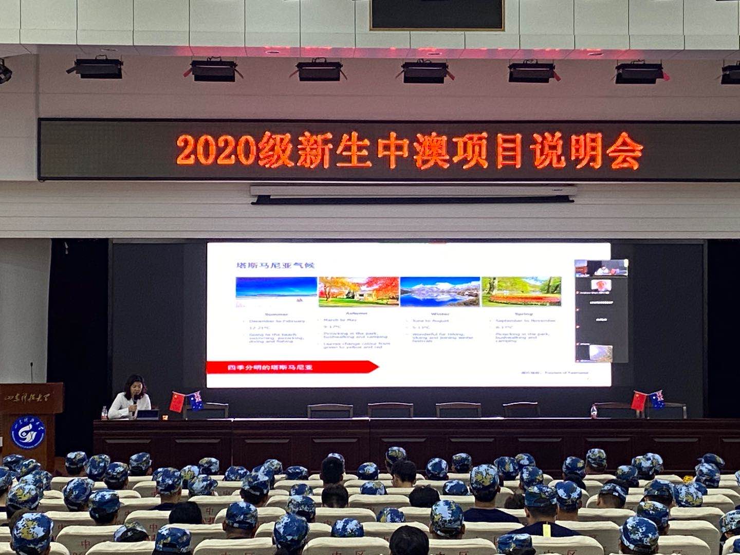 Andrew Chan院长对2020级新生表示衷心祝贺,他介绍了两校的长期合作历史,工程学院的教学模式、就业前景。校区国际交流与合作办公室杨朋老师为新生介绍了中外方学校的基本情况,详细介绍了中澳合作办学项目,参与中外合作办学的优势,塔斯马尼亚大学的学习和生活环境,参加2+2项目的入学要求等。塔大项目办公室王斐老师全面介绍了项目学生的英语学习体系。另外,正在塔大学习的陈翌典同学跟新生们分享了他的留学体验。新生们踊跃提问,与会人员一一进行了解答。多地视频同步交流的体验让新生和家长对塔斯马尼亚大学和中外合作办学有了全面而深入的了解,给家长和同学们留下了深刻的印象。