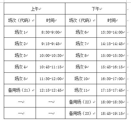 英语四级口语考试(CET-SET4)考试时间为11月18日,英语六级口语考试(CET-SET6)考试时间为11月19日,具体场次安排如下: