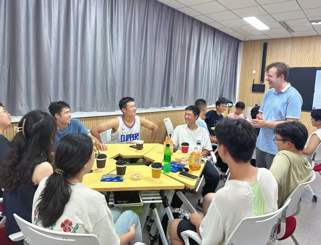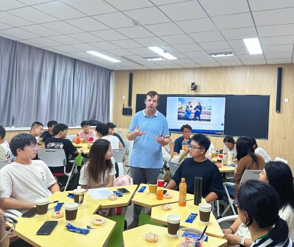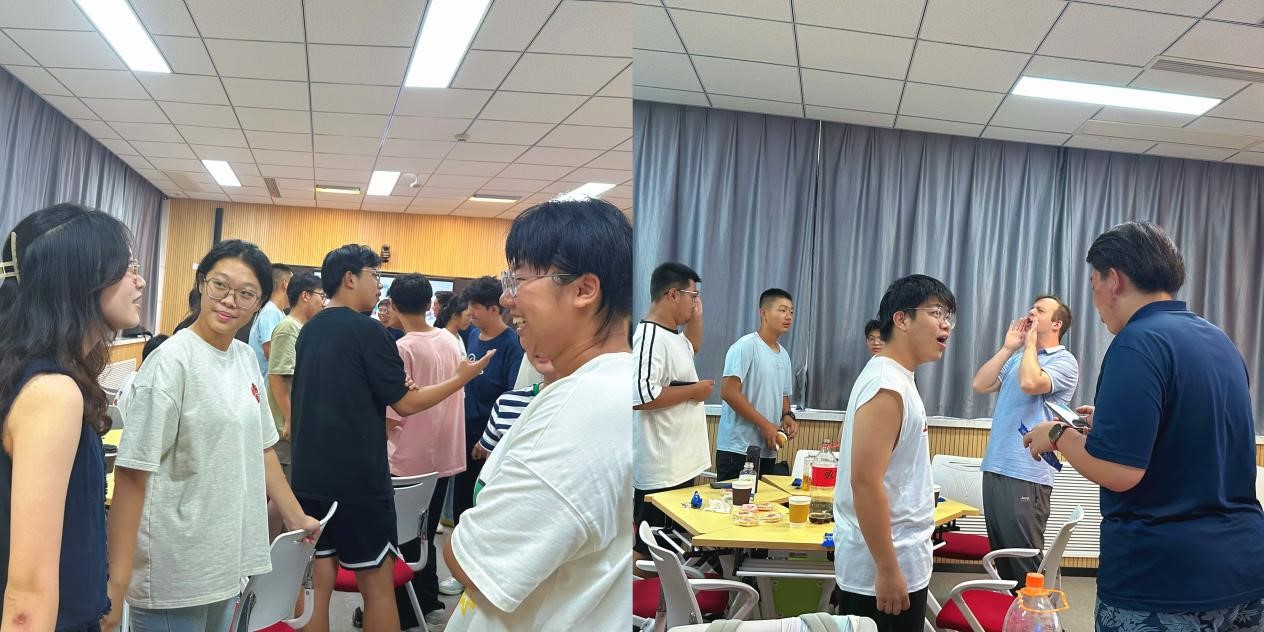 随后,同学们被分成小组,进行模拟对话和小组讨论。通过这些互动,他们练习了保持眼神交流、积极倾听以及如何提出开放性问题等沟通技巧。这不仅帮助他们打开话匣,也让大家在练习英语口语的同时增进了彼此之间的了解。大一新生们在交流之际还跟学长学姐们了解到关于学校课程的有效信息,外教Samuel风趣幽默的风格更让整个活动充满了欢声笑语,同学们的参与持续高涨。