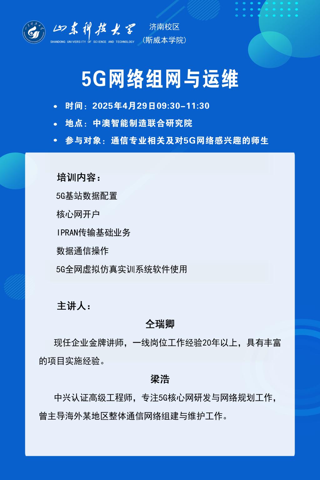 中澳智能制造联合研究院项目培训-5G网络组网与运维