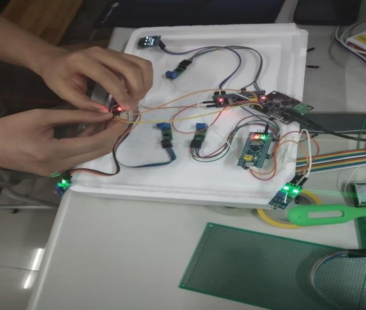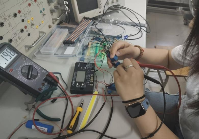 在实验室里,不同研究方向的同学们各展所长,互相帮助,共同努力。研究智能温室大棚系统的杜同学,面对ESP8266模块的复杂配网问题刻苦钻研,按不同的方法调试了数十次,终于通过优化串口函数和修改标识码,让温室的实时数据稳定传输至云端;研究光伏特性采样的王同学,根据光伏输出特性设计一款便携式测量仪,核心硬件电路设计和调试离不开他的耐心和积累。从事小功率逆变系统调试的另一位王同学,专注于SPWM波形优化,通过调整载波比、占空比等参数,有效提升了电能转换效率;研究同步boost电路的李同学将理论与实践结合,将电脑仿真与硬件操作配合,让系统设计长了“一双眼睛“,高效完成升压电路设计;骆同学刻苦钻研促进其智能照明系统研发成功,他将环境光与人体感应的协同控制,成功实现了可根据自然光照强度和人员活动情况自动调节灯光亮度与色温的照明系统及主从机通信;做太阳能路灯设计的刘同学总是出现在校园操场,实地测试光伏储能系统性能,确保设备在复杂气候条件下的稳定运行,适应不同工作环境;研究太阳能充电系统的张同学在面对充电效率低的问题时,不气馁不放弃,在改进充电芯片电路设计后,终于使充电效率达到95%以上。