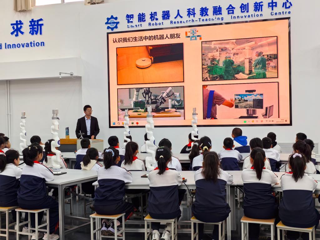 2025年11月17日上午九时,宝华小学四年级五班45名同学身着整齐校服,怀着期待走进校区智能机器人科教融合创新中心,开启了一场趣味盎然的科技研学活动。