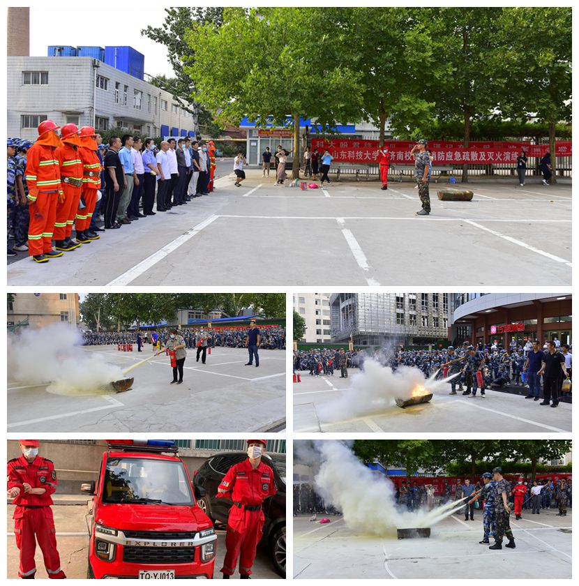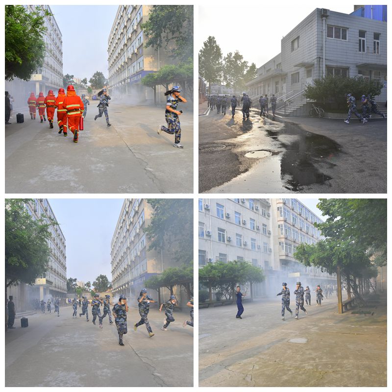 校区管委副主任郭加书,各部门、单位负责人,2021级新生军训团全体成员,全体学团工作干部,学生公寓、图书馆、食堂等重点部位工作人员,实验室管理员、各楼宇值班人员、物业管理人员、教师代表等参加了消防应急疏散逃生和灭火演习,消防、应急、派出所的有关负责同志应邀观摩指导了此次消防应急疏散及灭火演练。