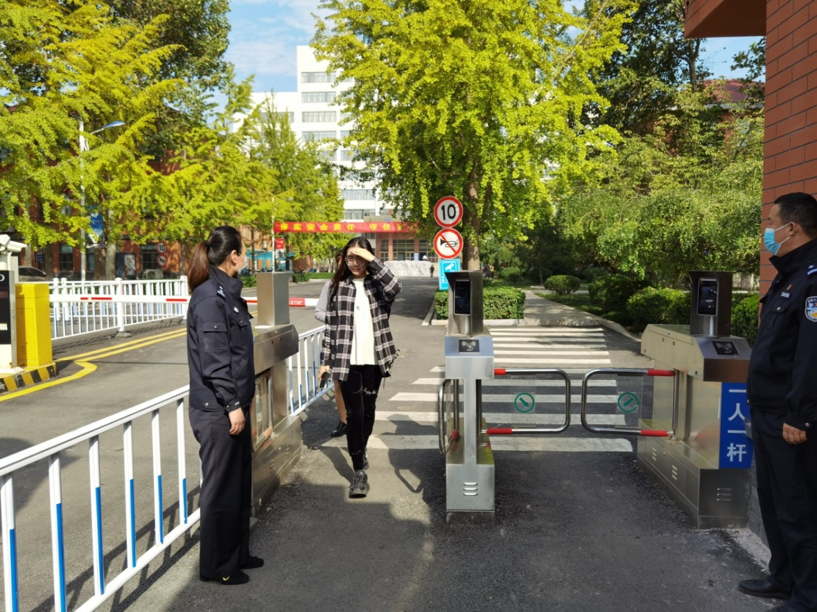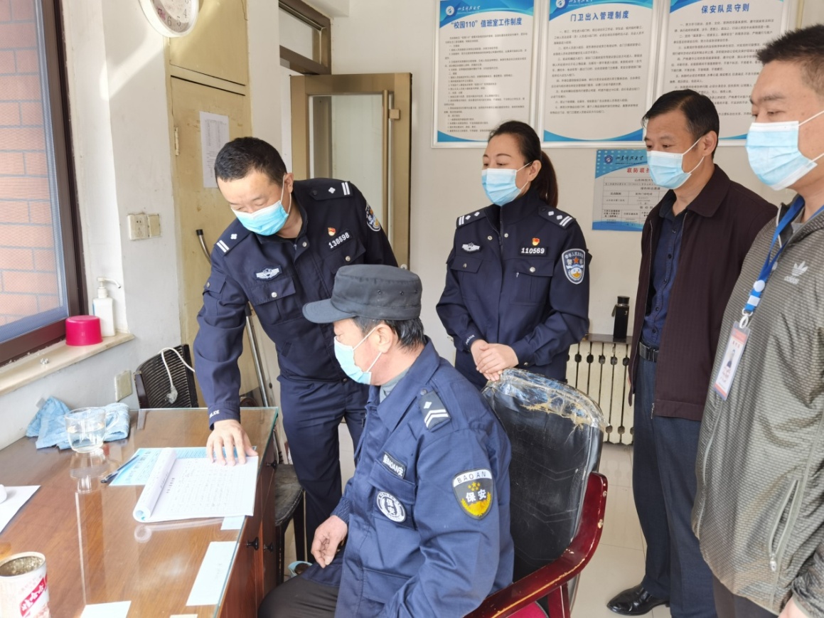 张涛了解了校区秋季学期开学以来特别是开展校园安全专项整治活动以来校区安全工作状况,实地查看了校区出入管理情况,详细了解安保队伍建设、安保人员执勤、外来人员(车辆)出入管控流程及信息登记记录。