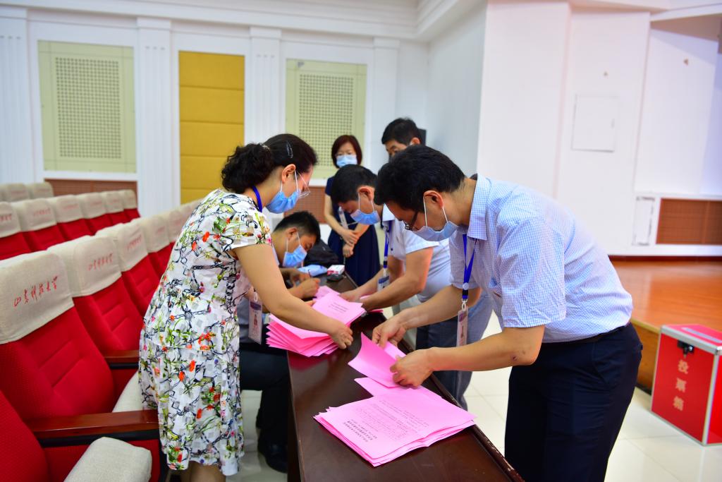 随后,大会审议通过了候选人名单和选举办法,在总监票人孙国强同志的主持下,按照大会工作程序,与会党员以无记名投票方式差额选举产生了新一届机关总支委员会,刘虎、刘国栋、冷树伟、宋荣华、赵长青、董向阳六位同志当选新一届机关党总支委员会委员。