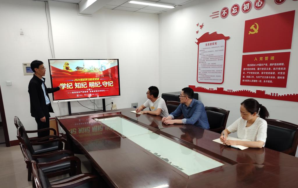 管理一党支部支部书记宋荣华以《学纪 知纪 明纪 守纪——做忠诚干净担当的党员干部》为题为支部党员讲专题党课,从坚持聚焦重点、深入了解《条例》的发展脉络,坚持优良学风、深刻把握《条例》的内涵要义,坚持以学促干、强化贯彻《条例》的使命担当三个方面对《条例》进行解读、阐释,要求全体党员在真学、真知、真干中深刻把握党纪学习教育的总体要求,把握“六项纪律”的条文要义,内化于心,外化于行,以党纪学习教育增强纪律意识,强化自我约束,增强政治定力、道德定力,始终做到忠诚干净担当。