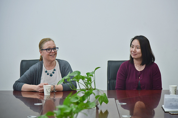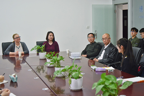 3月13日下午,财经系于3-316-1会议室举办了2017级国贸教改班学生与克拉克大学老师见面会。财经系主任段治平、系副主任刘忠诚、商贸教研室主任袁清文以及来自克拉克大学的Ammy、陈茵茵,2017级国贸教改班全体同学参加此次会议。会议伊始,Ammy表达了她对同学们的热切欢迎,并通过校史、地理位置等信息向在座的同学们详细介绍了克拉克大学。陈茵茵则以自己在克拉克大学六年的学习经历为基础,谈了自己对克拉克大学的印象,让同学们对克拉克大学有了初步了解。随后,Ammy与同学们围绕赴美学习的学费、美国生活及环境等问题进行了沟通,大家畅所欲言,各抒己见。通过与Ammy的交流,同学们对克拉克大学有了更深入、更全面的认识。段治平主任针对大家的出国问题提出了合理的建议,鼓励同学们继续提高英文水平,并表达了对同学们的殷切期望和美好祝愿。