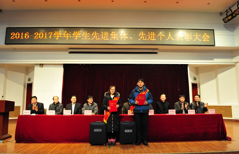 校区领导向受到表彰的先进集体、先进个人代表颁发了奖状和证书。先进班集体获奖单位代表、“三好学生”称号获得者张茂轩同学在大会上发言,汇报了自己学习和社会工作情况,谈了体会和感想。