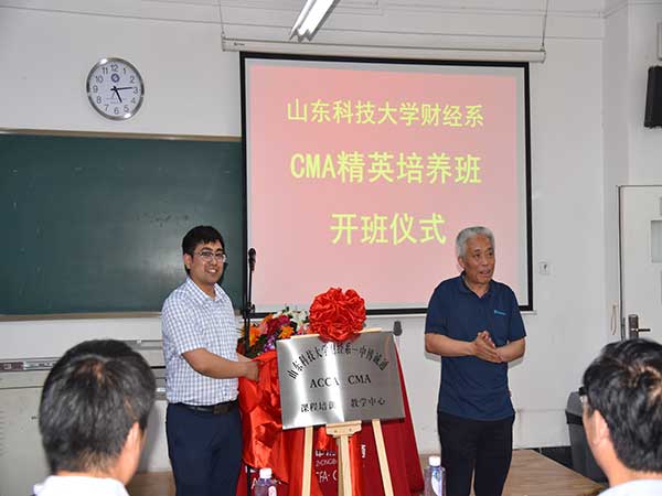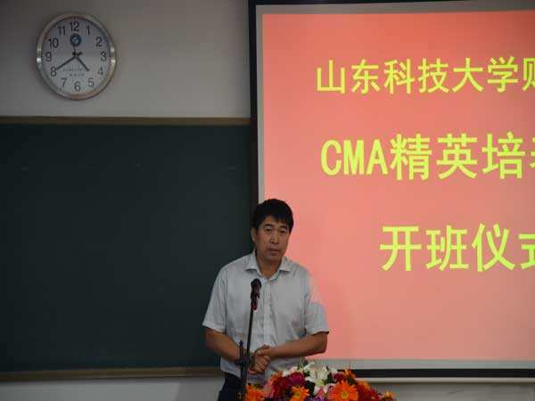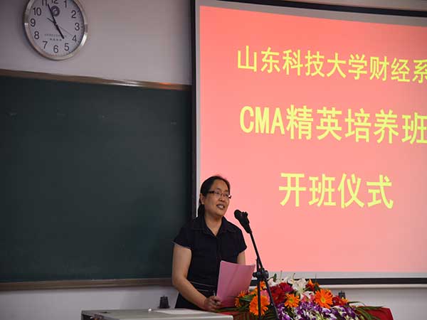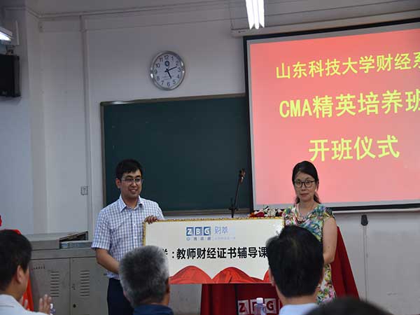 5月12日下午,财经系CMA精英培养实验班开班仪式在1-404教室举行。校区学生工作处处长毛庆东、校区团委书记赵长青、系党总支书记宋伯涛、系主任段治平、系党总支副书记胡宝征、系副主任刘忠诚出席仪式,仪式由会计教研室主任丛爱红主持。CMA精英培养实验班负责人、中博诚通负责人、会计教研室部分教师、系团总支辅导员及CMA社团成员参加了本次仪式。