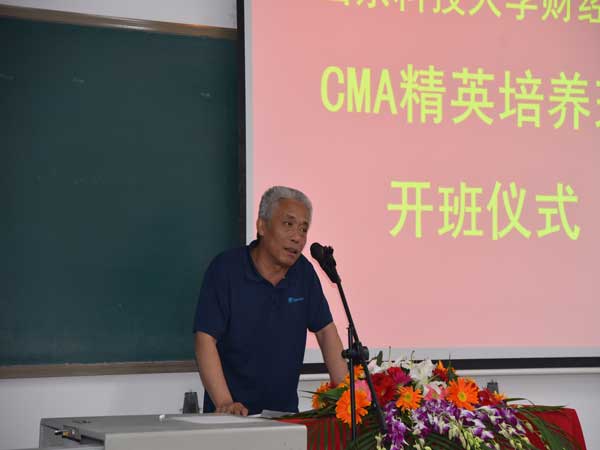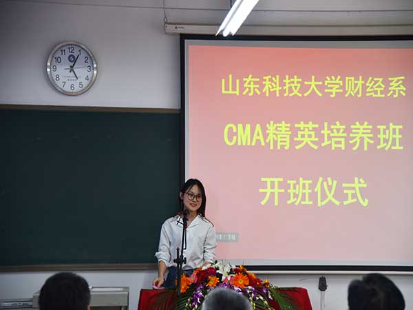 仪式伊始,校区学生工作处处长毛庆东致词,他对CMA实验班成立祝贺,并希望在座师生共同努力,为下一步的承前启后、良性发展打下坚实基础。接着,校区团委书记赵长青向同学们寄语,他强调了培养专业性人才的必要性及实践创新的重要性,对CMA的创新精神给予了高度评价。随后,财经系主任段治平从“为什么办学”、“如何办学”等方面告诫学员们“要抓住机会,将自己打造成优秀的人才”。中博诚通山东分公司总经理刘振波介绍了中博诚通培训班的全国分布及丰厚的教学资源,并鼓励大家不忘初心,努力成就未来。会计学15-1班的优秀学员陆如意向大家分享了自己的学习历程以及珍惜学习机会、增强自身竞争力的坚定决心。