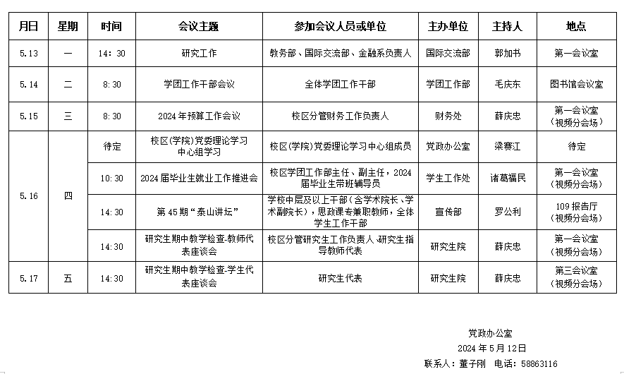 yl23455永利(斯威本学院)第十三周会议安排