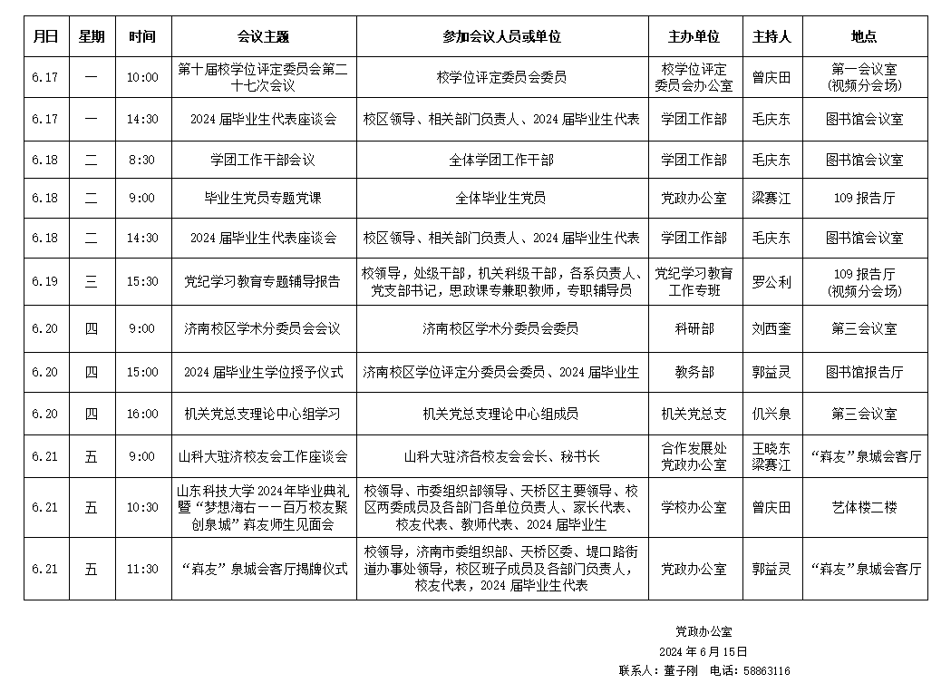 yl23455永利(斯威本学院)第十六周会议安排