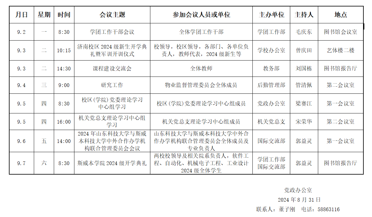 yl23455永利(斯威本学院)第一周会议安排