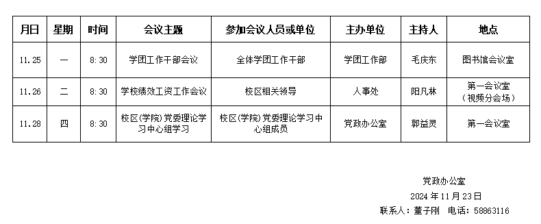 yl23455永利(斯威本学院)第十四周会议安排