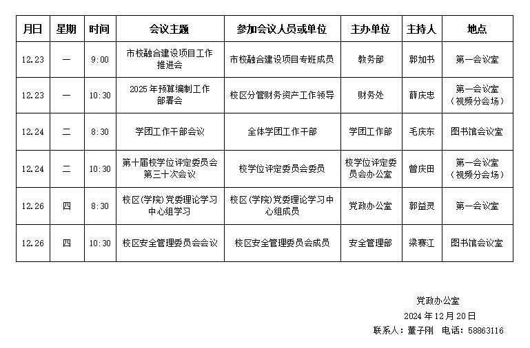 yl23455永利(斯威本学院)第十六周会议安排