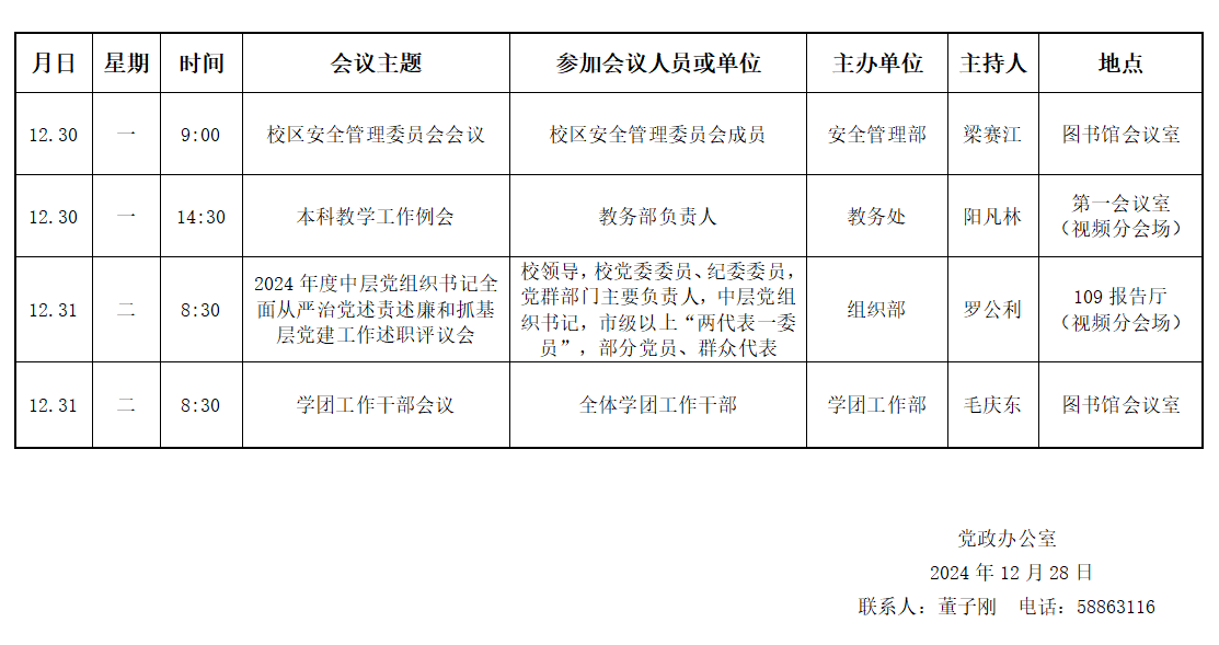 yl23455永利(斯威本学院)第十九周会议安排