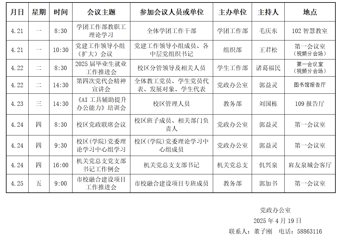 yl23455永利(斯威本学院)第十周会议安排