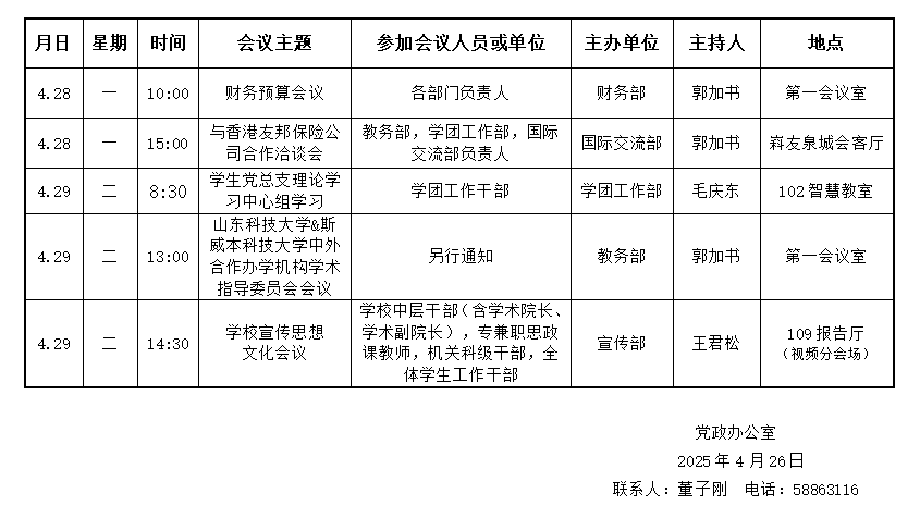 yl23455永利(斯威本学院)第十周会议安排