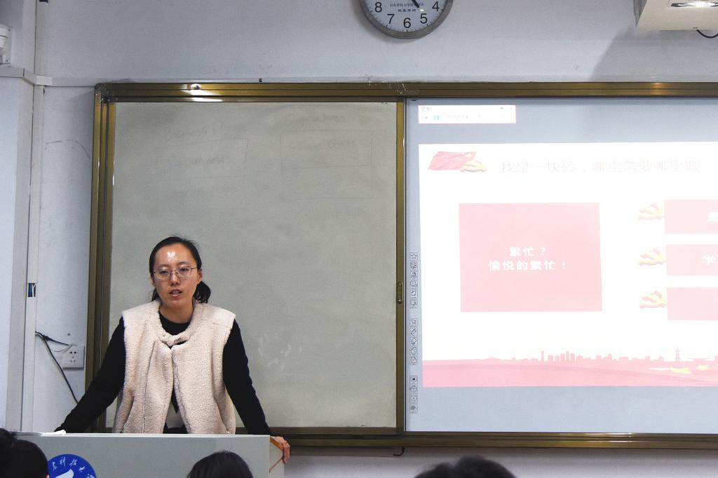 11月12日,财经系学生党支部书记齐斯文于下午四点在1-506为学生党支部全体学生党员以《共产党人的立身之本》为题开展支部书记讲党课活动。