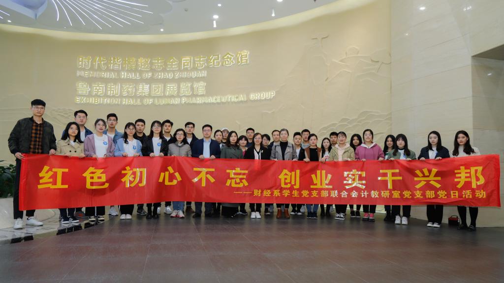 10月19日上午,yl23455永利,yl6809永利官网,yl23411永利集团官网财经系学生党支部与会计教研室支部党员赴鲁南制药集团开展“红色初心不忘 创业实干兴邦”主题党日活动,参观“时代楷模”赵志全同志纪念馆与新时代药业厂区,学习赵志全同志积极作为的精神风貌,激励年轻党员干事创业,勇做时代担当。