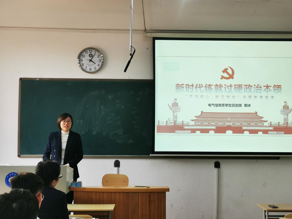 根据学校和校区党委的工作安排,结合我系主题教育实施方案,10月17日,系党总支副书记韩冰以《新时代练就过硬政治能力》为题为全系学生党员上了一堂专题党课。