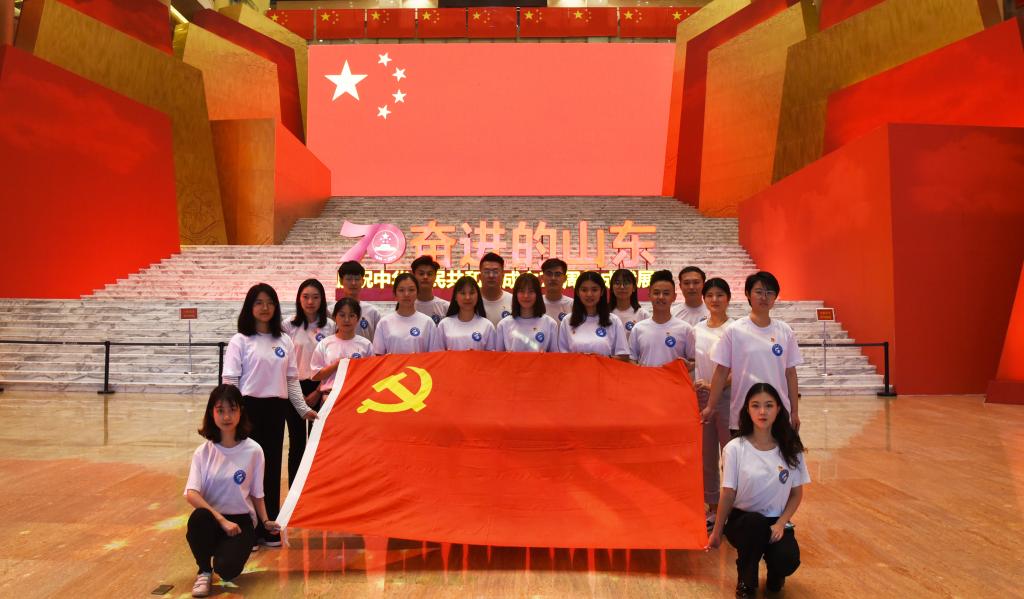 为深入学习领会习近平新时代中国特色社会主义思想,感受山东人民在省委、省政府的坚强领导下,奋发向上、敢为人先的精神风貌,坚定青年党员守初心、担使命、抓作为的信念追求,2019年10月8日下午,财经系全体学生党员前往山东省博物馆开展“我的初心使命”主题党日集体活动。本次活动主要是参观“奋进的山东”庆祝中华人民共和国成立70周年成就展、《祖国颂》主题朗诵、“家乡红色资源我推荐”视频录制三个环节。