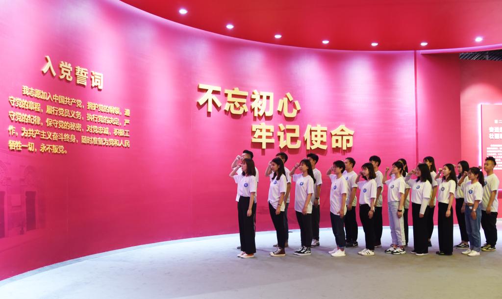 尔后,在入党誓词的展厅内,全体学生党员进行了庄重的入党宣誓,并以饱满的热情进行了《祖国颂》的朗诵,于展厅外进行了介绍家乡红色资源的视频录制。通过活动,每位学生党员都以昂扬的精神风貌诠释了对党、对国家的热爱崇敬之情,也展现了齐鲁儿女的铮铮热血之气。
