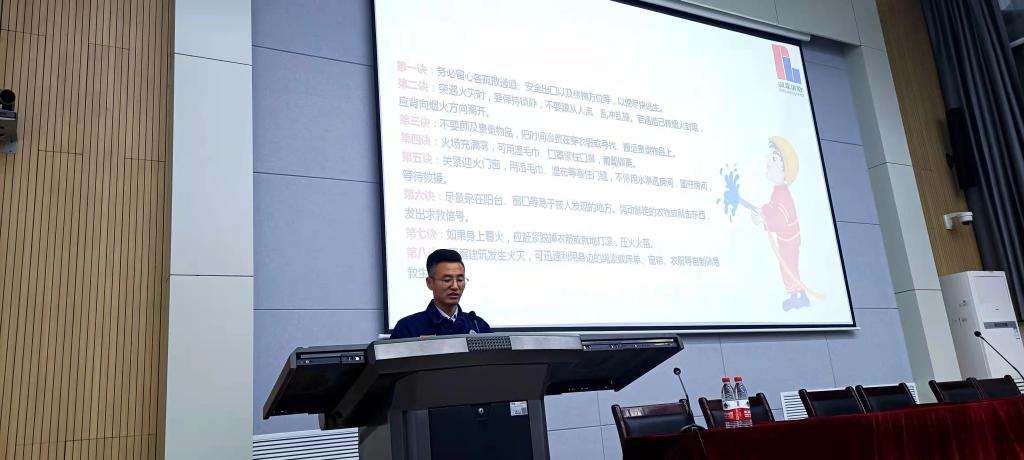 根据yl23455永利2021年“消防安全月”活动计划安排,11月15日下午,校区安全管理部在教学主楼109教室进行消防安全知识培训会,邀请山东润霖消防工程有限公司范殿辉讲师讲解消防安全知识,校区两系一部实验室管理、物业值班、安保等相关人员参加了培训会议。