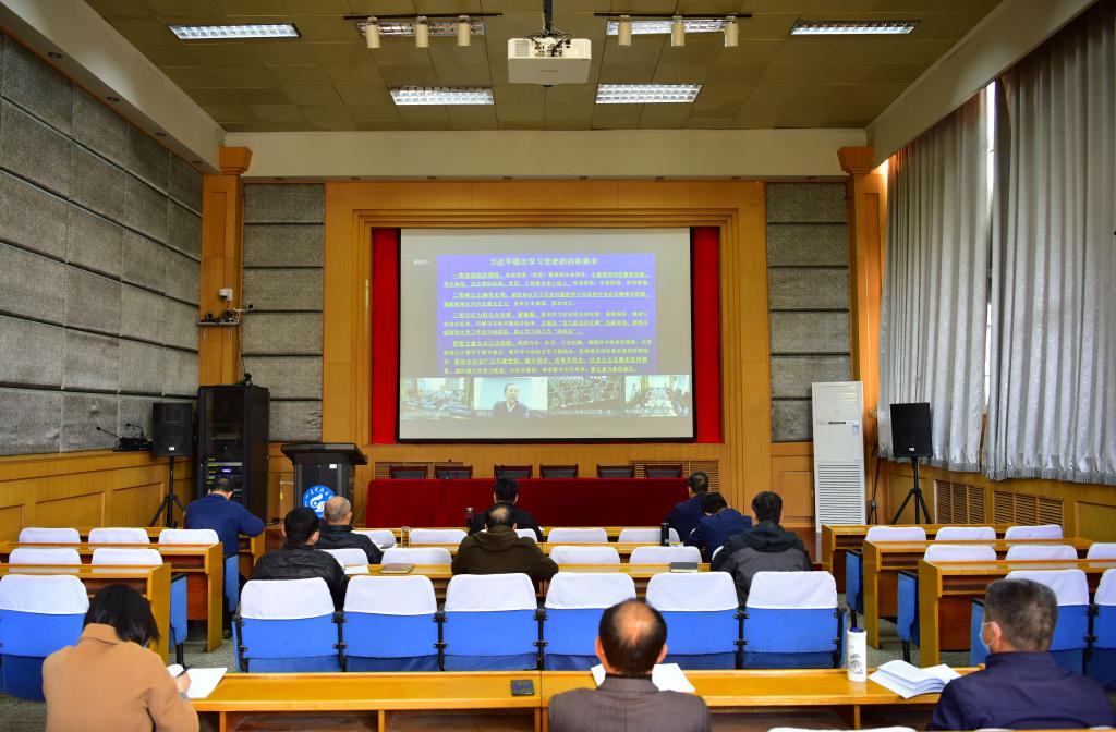 4月6日上午,yl23455永利党工委理论学习中心组(扩大)开展2021年第五次集体学习,校区党工委理论学习中心组成员和各党总支书记在109报告厅通过三地视频会议聆听了上海市中共党史学会会长、上海市社联副主席忻平作的题为“从百年党史非凡历程中感悟真理和前行力量”的专题报告。