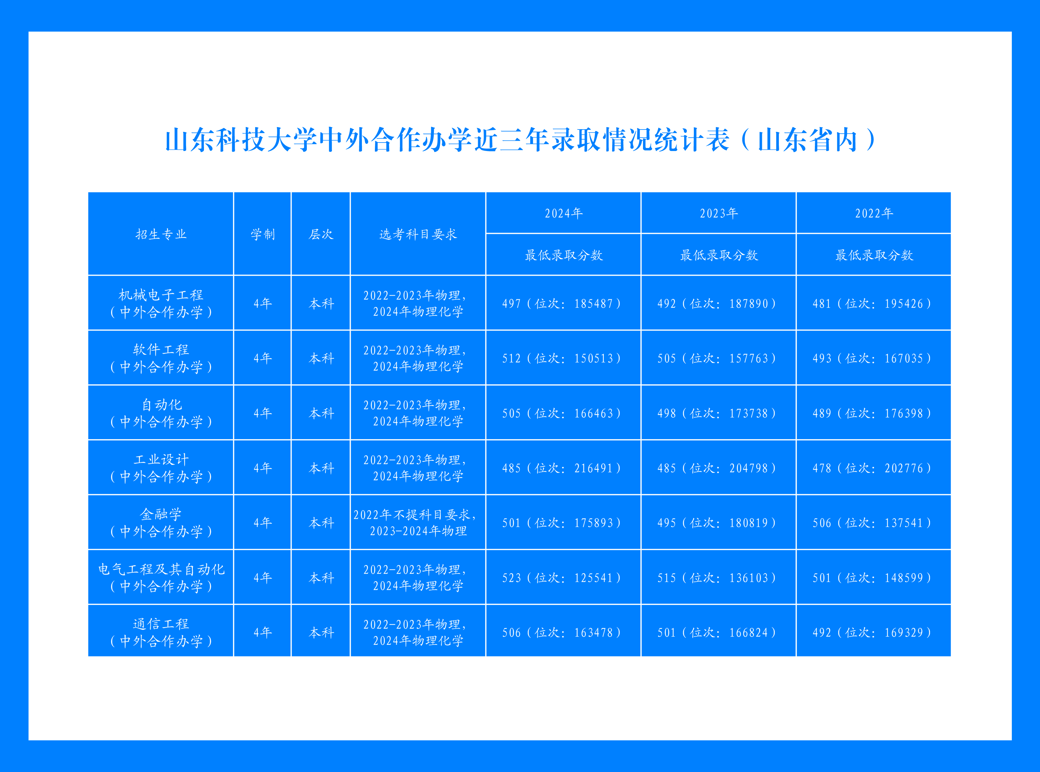 山东科技大学中外合作办学近三年录取情况统计表(山东省)