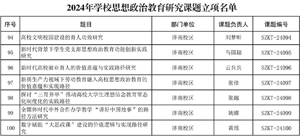 近日,2024年学校思想政治教育研究课题立项结果公布,校区7项课题获批立项,立项数量位居学校前列。