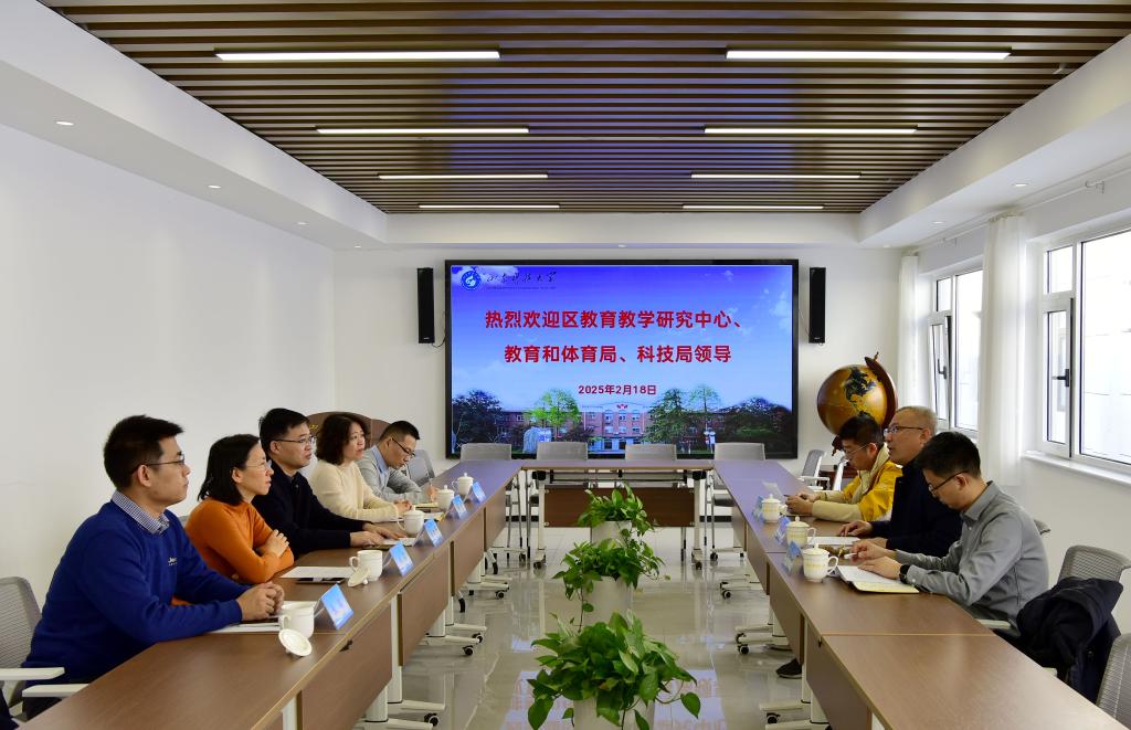 2月18日上午,天桥区yl23411永利集团官网研究中心副主任阚世平、教育和体育局电教科科长石京博、科技局副局长刘颖一行到校区调研交流工作。校区管委副主任刘西奎、校人文社科处副处长云兵兵、机械与自动化系副教授张帅帅参加座谈交流。