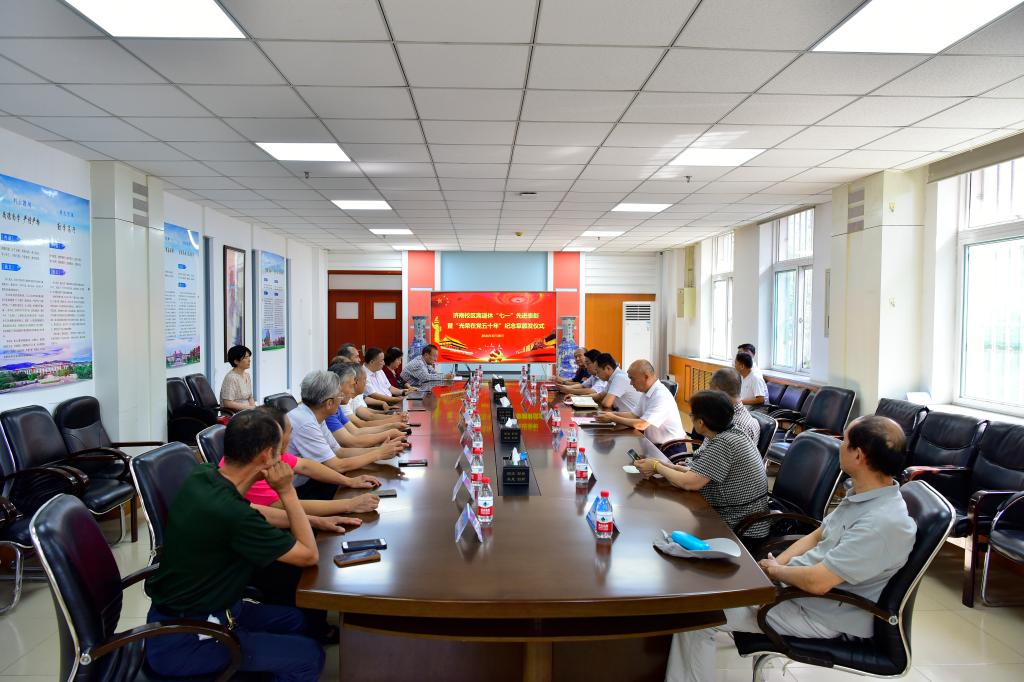 为深入推进党纪学习教育,庆祝中国共产党成立103周年,6月28日,yl23455永利离退休工作办公室在图书馆会议室举行“七一”表彰大会暨“光荣在党50年”纪念章颁发仪式。校区管委常务副主任郭加书出席会议并讲话。校区党委副书记兼机关党总支书记仉兴泉、离退休党员代表、“光荣在党50年”党员参加会议。会议由学校离退休工作处党委副书记兼副处长张树青主持。