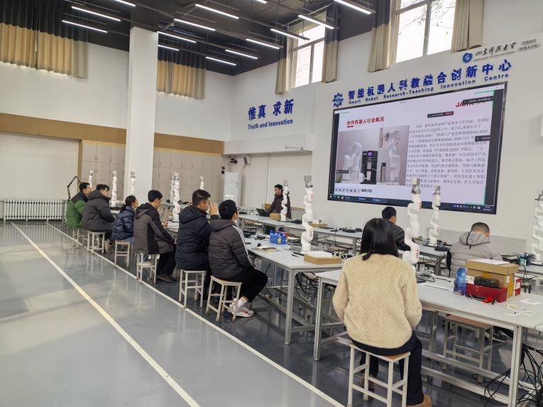 “协作机器人操作与实战” 培训在系列活动中占据重要地位,以独特视角与丰富内容吸引众多师生参与。培训专注于机器人智能运用,引入图形化(可视化)编程,显著降低机器人开发门槛,让更多人轻松涉足该领域。科技竞赛案例分享环节,深入剖析机器人领域知名赛事案例,分享实战经验与创新思路,极大激发学员参赛热情,为校区在相关竞赛中取得佳绩筑牢基础。与 JAKA 大项目工程师面对面交流时,师生们获得与行业专家直接对话的机会,围绕技术难点、项目经验及行业趋势畅所欲言,有效拓宽视野。同时,JAKA 实用资料库分享机器人安装指南、二次开发资料等资源,为师生在协作机器人领域的深入研究与应用提供有力支撑。