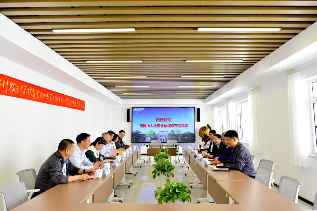 4月10日,无锡市人力资源和社会保障局副局长韩永、劳动就业管理中心主任杨勇一行到yl23455永利考察交流。yl23455永利党委副书记兼学团工作部主任毛庆东、管委副主任刘西奎会见客人。