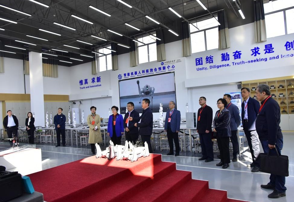 张建明一行先后到校区两栋历史建筑进行实地调研,现场听取校区简介,深入了解历史建筑的深厚历史底蕴、实用功能、建筑保护与活化利用等情况,并参观了智能机器人科教融合创新中心。梁赛江详细介绍了校区的功能定位、办学特色、市校融合和发展规划,表示将充分发挥自身优势,深化校地合作,助力天桥区高质量发展。